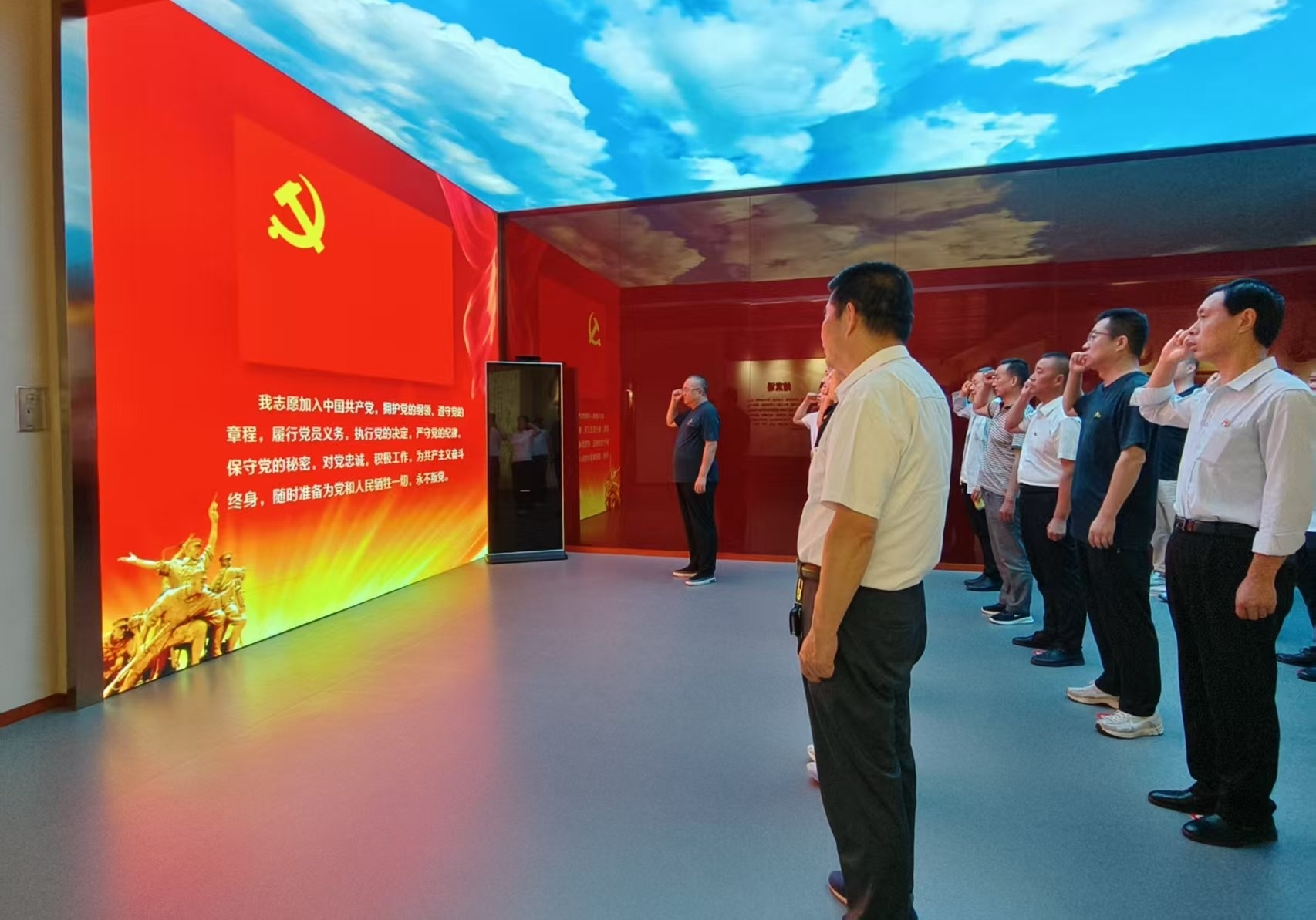 參觀結(jié)束后,全體黨員在宣誓廳,面對鮮紅的黨旗,莊嚴(yán)地重溫入黨誓詞,進(jìn)一步堅定了黨員干部們不懈奮斗、永葆清正廉潔的決心。
